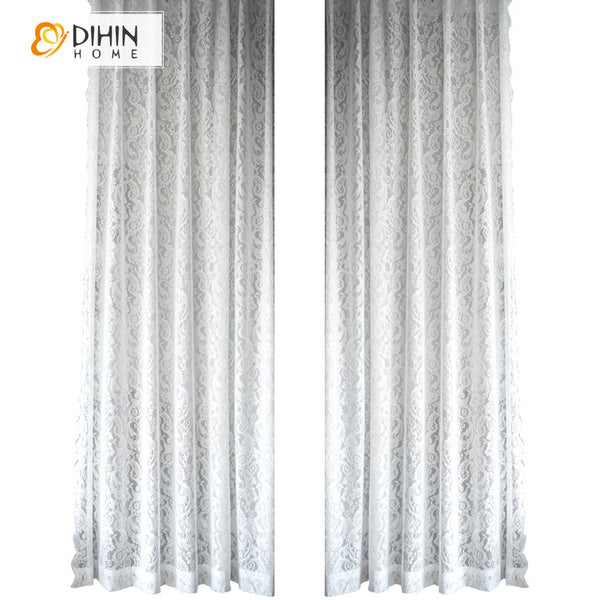 DIHIN HOME European White Lace Sheer Curtain,Grommet Window Curtain for Living Room ,52x63-inch,1 Panel
