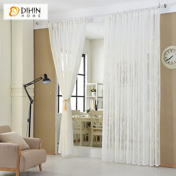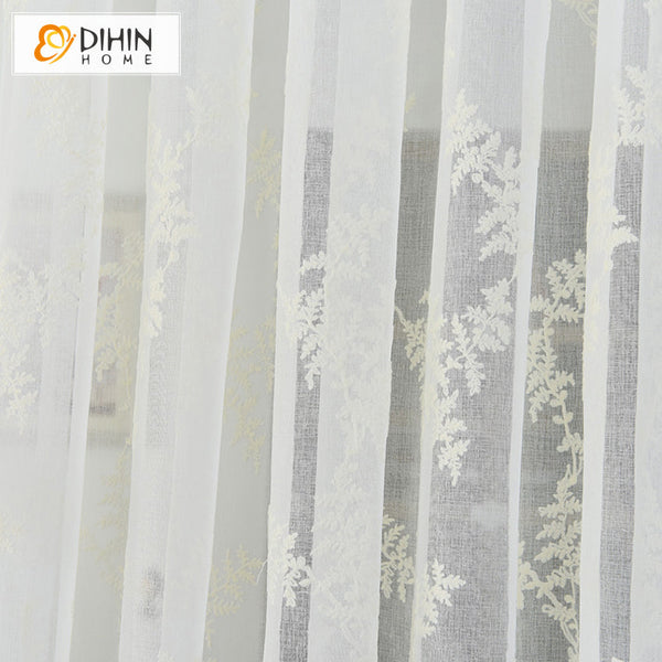 DIHIN HOME Pastoral White Cotton Linen,Sheer Curtain,Grommet Window Curtain for Living Room ,52x63-inch,1 Panel