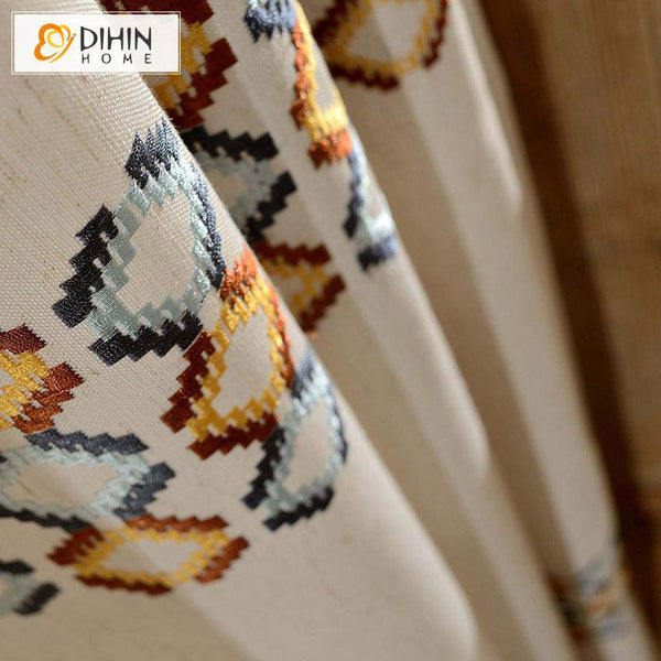 DIHIN HOME Modern Geometric Bar Embroidered Curtain,Blackout Curtains Grommet Window Curtain for Living Room ,52x84-inch,1 Panel